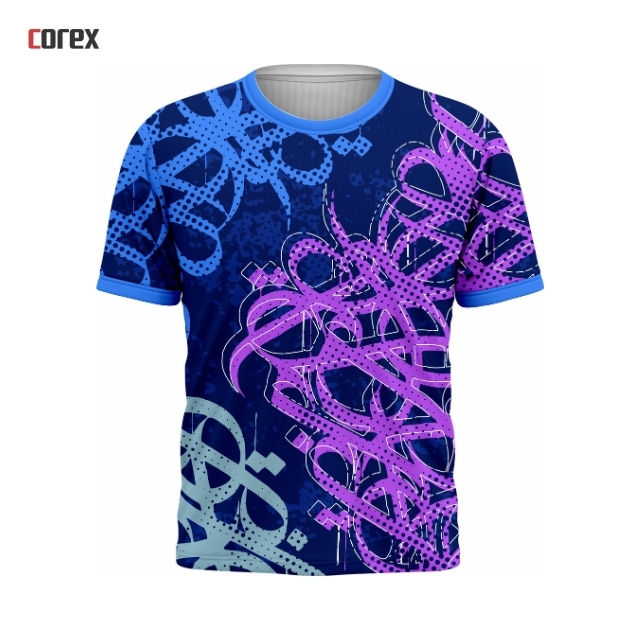 Maillot formel en polyester respirant pour homme, col rond, manches courtes, avec logo personnalisé en calligraphie imprimé par sublimation