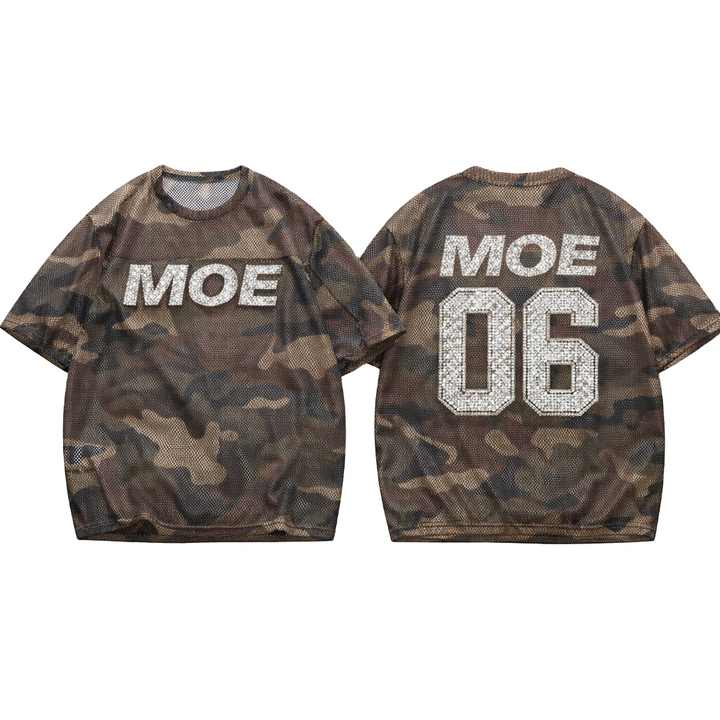Maillot de football américain personnalisé en maille camouflage avec strass, respirant, en polyester, coupe oversize, uniforme d'équipe, production OEM