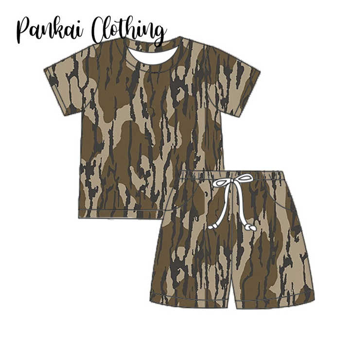 Nouveau été à manches courtes Shorts enfants 2 pièces tenue personnalisé sud imprimé lait soie bébé enfants garçon ensemble de vêtements