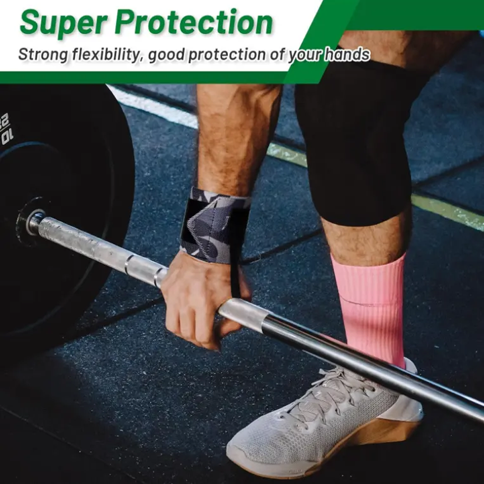 Bandes de poignet de musculation camouflage personnalisées, haute qualité, durables, élastiques, réglables pour le sport et l'extérieur, avec fermeture pour un soutien optimal en salle de sport
