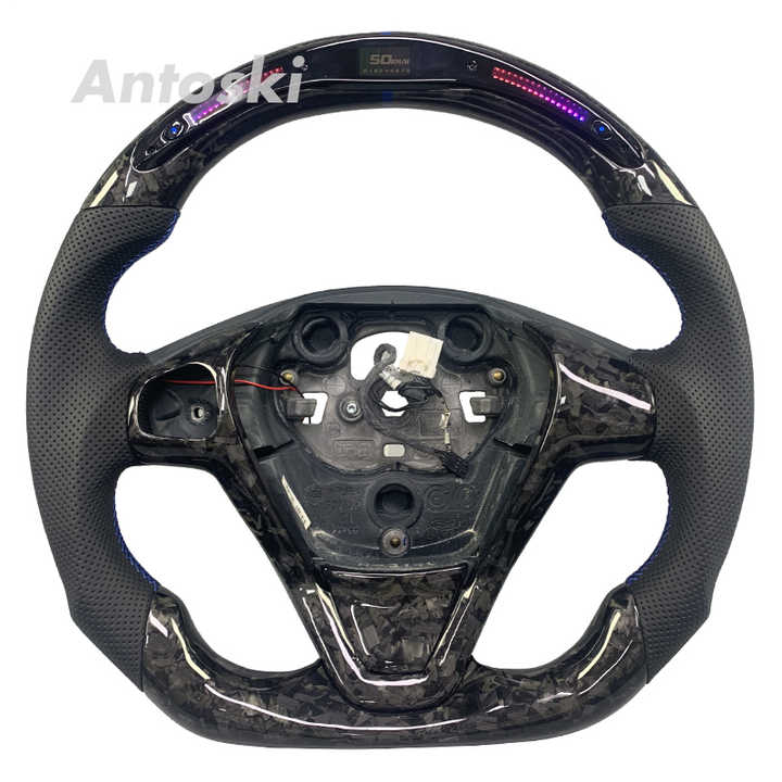 Volant intérieur de voiture en cuir forgé en fibre de carbone pour Ford Fiesta ST CCH DX Sedan 2009-2017 avec affichage intelligent à LED
