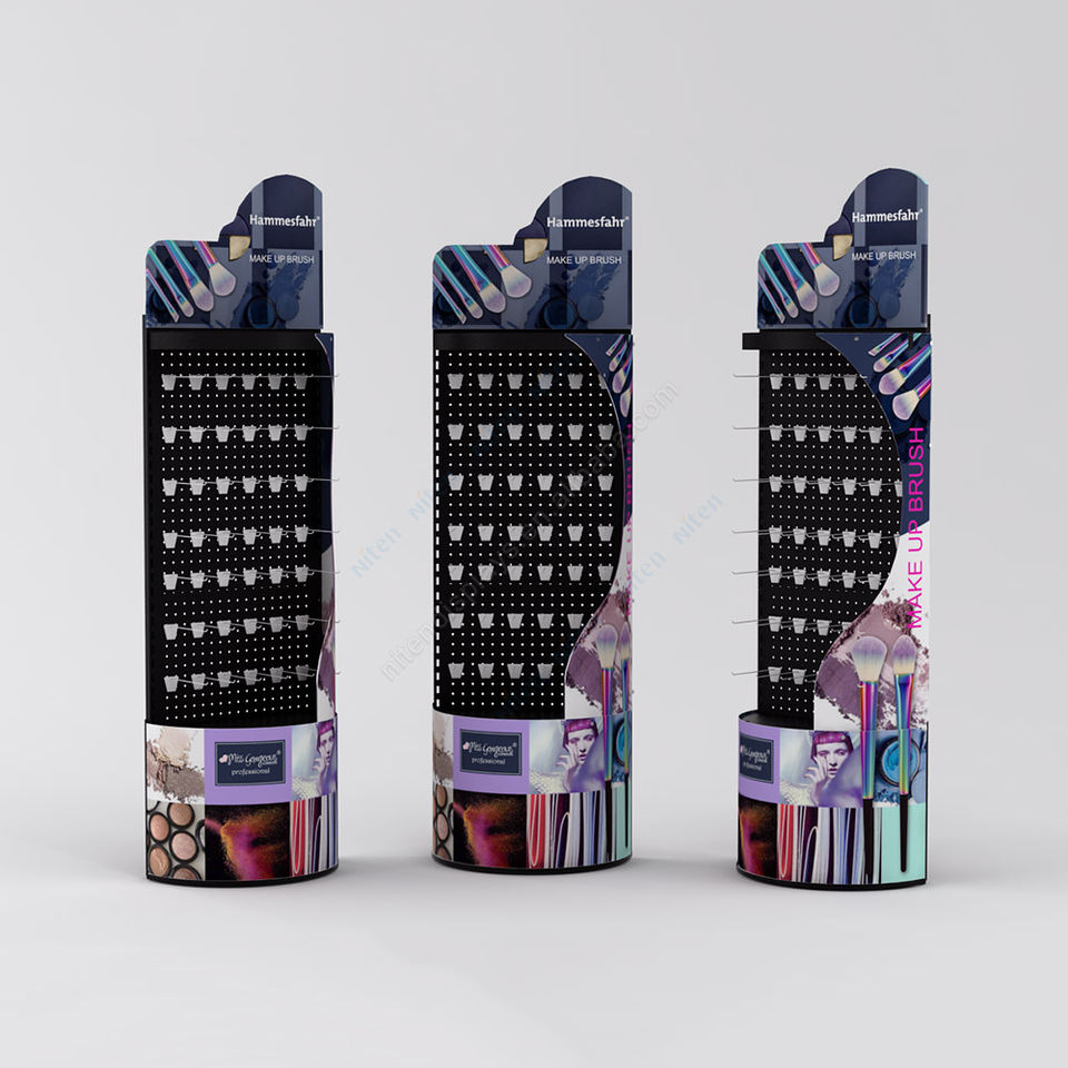 Support d'affichage cosmétique en carton personnalisé pour la vente au détail de parfums, de rouges à lèvres, de cils, support de sol en métal, organisateur de maquillage en carton ondulé