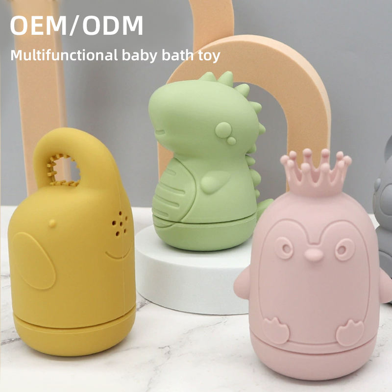 Cadeau de salle de bain de bébé en silicone animal de dessin animé personnalisé ensemble de jouets de bain pour enfants respectueux de l'environnement jouet de bain en silicone pour bébé