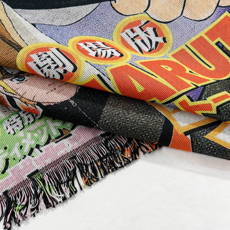 Bande dessinée personnalisée anime tapisserie imprimé coton polyester tapisserie tricoté tissé couverture fil jeter