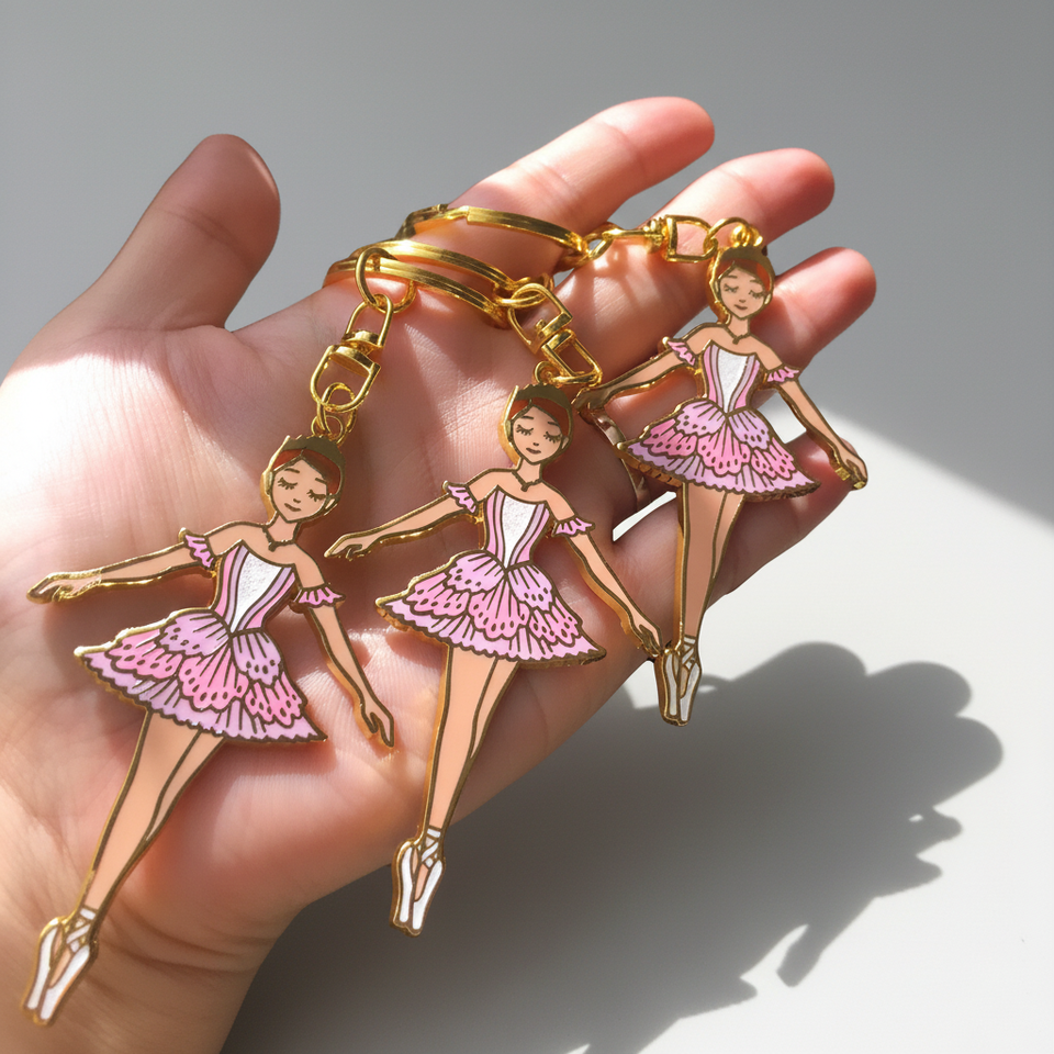 Nom du produit:Porte-clés 3D en métal personnalisé, motif fille de ballet dansant, style dessin animé