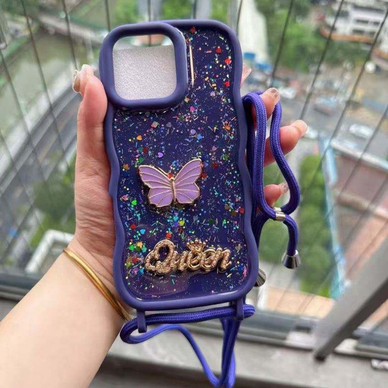 Nom du produit:Étui de téléphone bandoulière avec nœud en résine pailletée