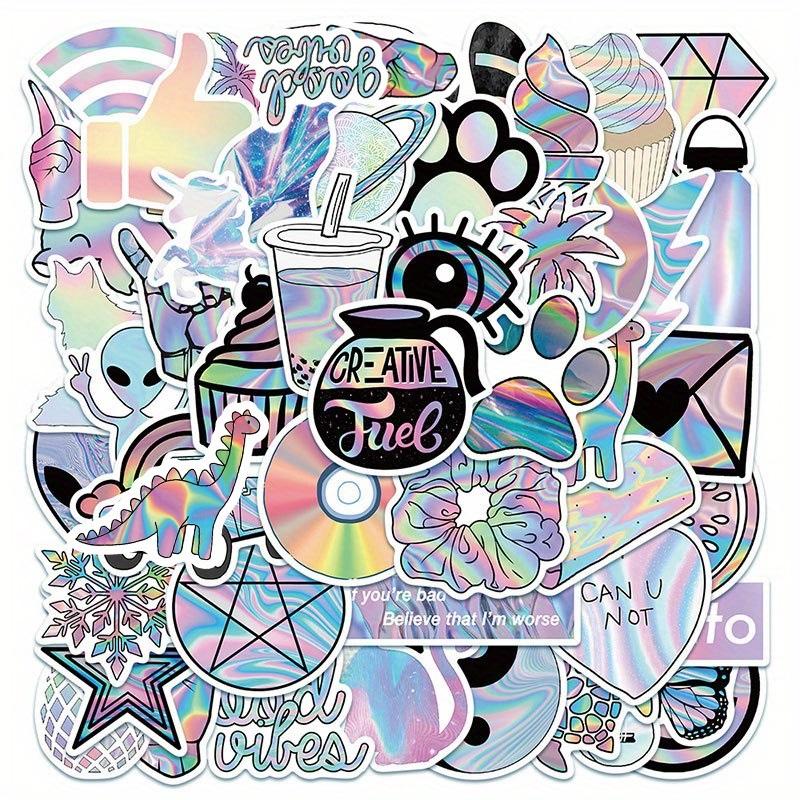 Autocollants en vinyle holographiques personnalisés avec logo de dessin animé | Étiquettes réfléchissantes brillantes imperméables et écologiques avec revêtement anti-UV pour une image de marque haut de gamme