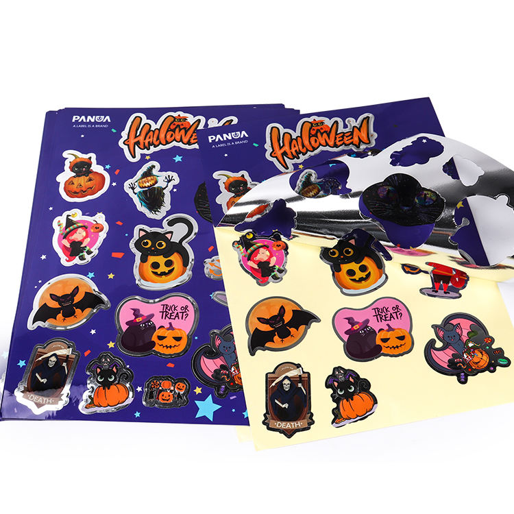 Impression d'étiquettes de dessins animés personnalisées, autocollants découpés à la forme, feuille d'autocollants imperméables en vinyle pailleté, pack d'autocollants avec logo, feuille d'autocollants découpés à la forme A4A5A6