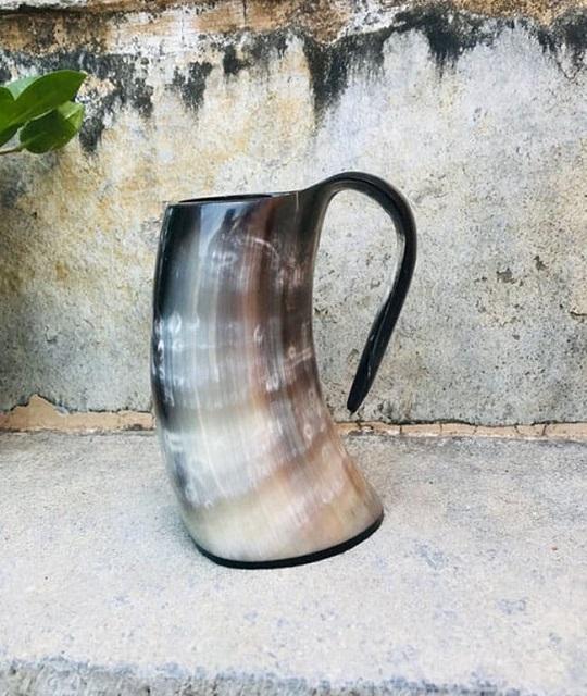 Custom Carved Buffalo Horn Viking Mug with Handle High Quality Ox Horn Cup for Drinking for Parties or Lovers