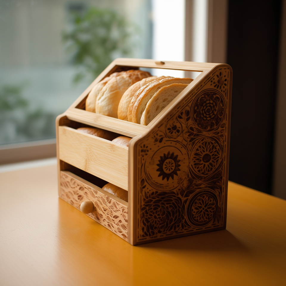 Boîte à pain en bois sculptée sur mesure | Artisanat haut de gamme | Offres d'usine