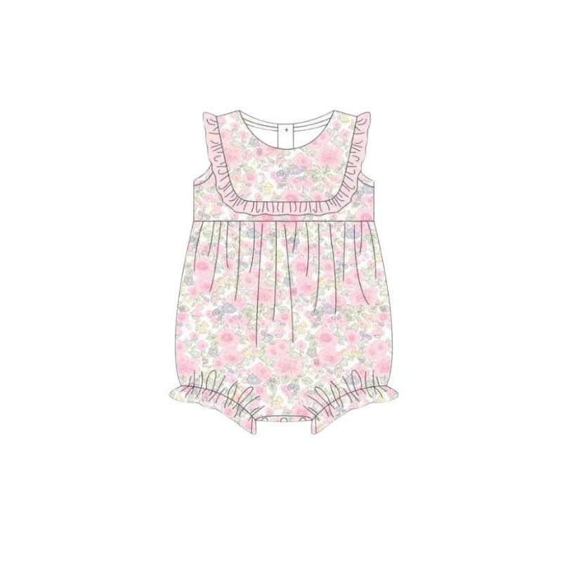 Tenues décontractées personnalisées pour enfants : shorts en tissu peigné à imprimé floral pour filles, robes barboteuses pour bébés, et vêtements assortis pour frères et sœurs - Vente en gros