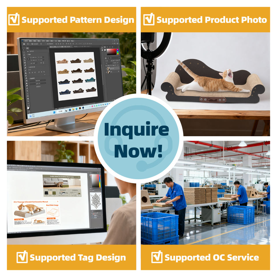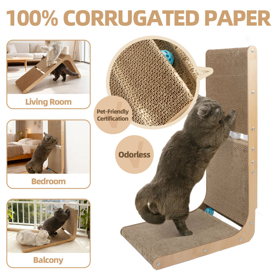 Tampon à gratter personnalisé en carton ondulé en forme de L pour chat avec balle jouet pour chats d'intérieur protégeant les meubles