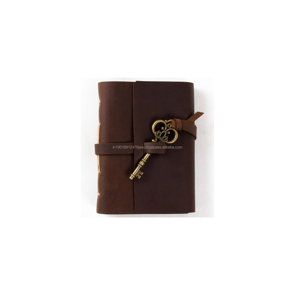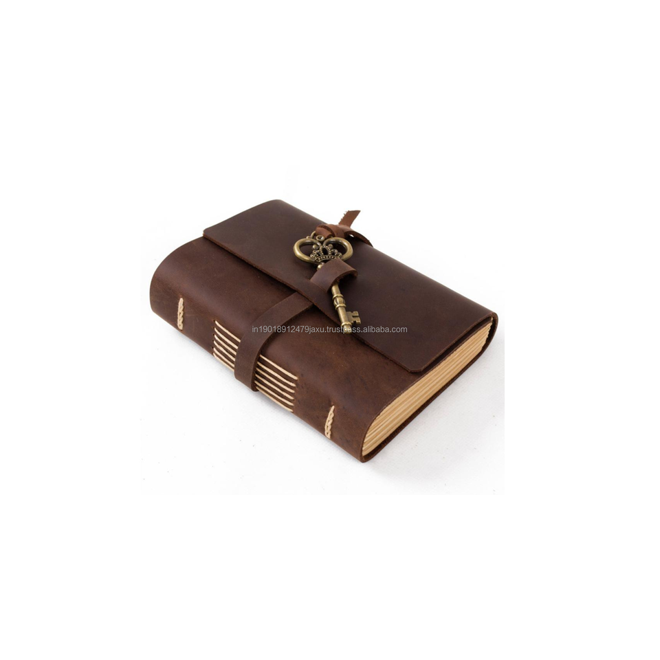 Journal intime personnalisé Catton marron papier d'avion Antique serrure à clé bracelet en cuir Journal indien en cuir véritable couverture rigide fil à coudre