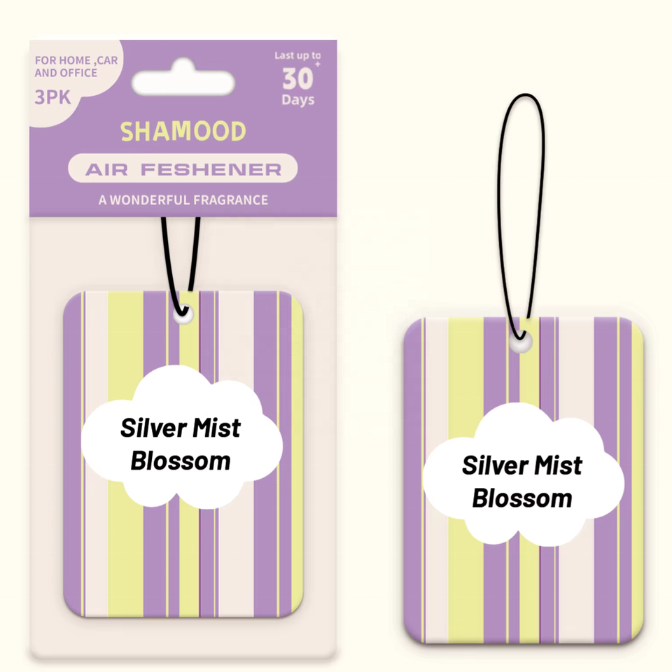 Rafraîchisseur d'air de voiture suspendu en papier cellulosique personnalisé, découpé à l'emporte-pièce de formes exclusives pour le logo de votre marque