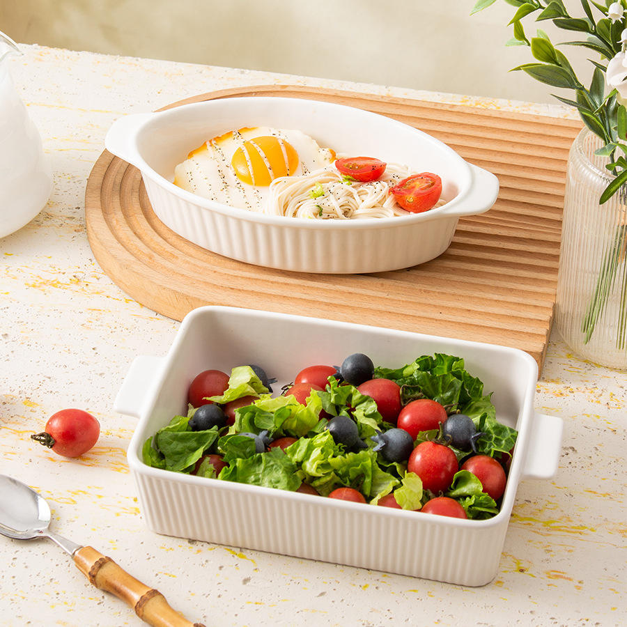 Plat à four en céramique personnalisé, rectangulaire, blanc, résistant au four, pour usage domestique et hôtelier DP1811C 10 DP1798T 9.5