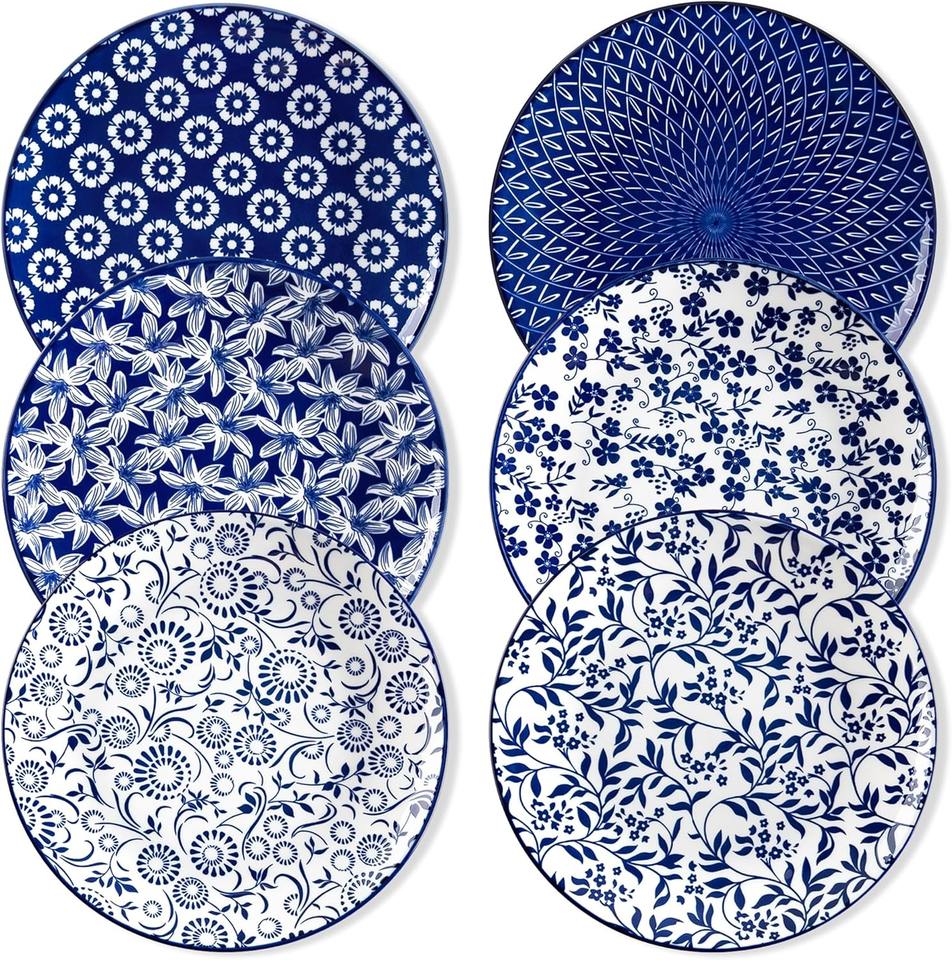 Assiettes à dîner en céramique personnalisées, grandes assiettes vintage pour la cuisine, assiettes en porcelaine bleues et blanches, compatibles micro-ondes et lave-vaisselle