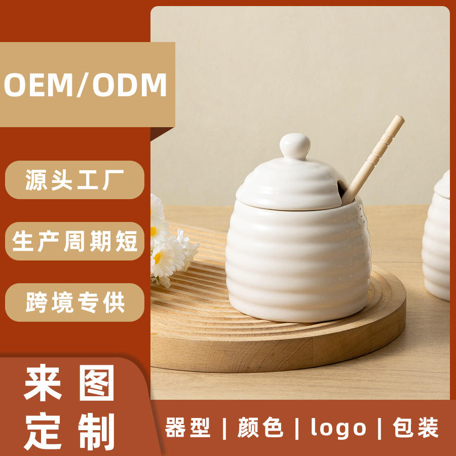 Pot à miel en céramique personnalisé avec couvercle, blanc, rond, hermétique, pour usage en cuisine