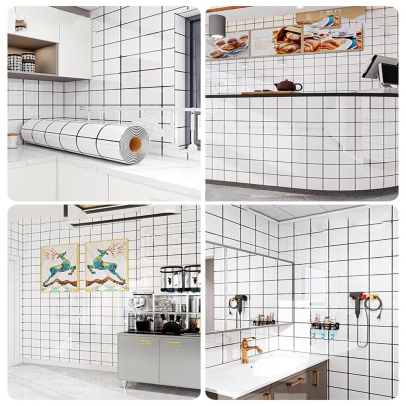 Autocollants muraux en PVC à motif carreaux de céramique personnalisés, autocollants muraux imperméables pour cuisine, panneau aluminium-plastique, fond de papier peint DIY