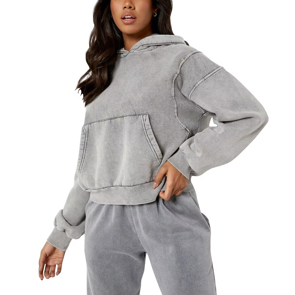 Sweat à capuche oversize gris anthracite délavé à l'acide, style vintage, en molleton 100% coton, séchage rapide, 300g, vente en gros, livraison en vrac