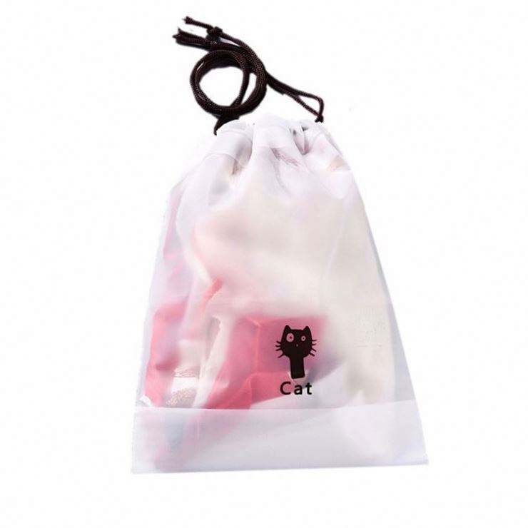 Sac de rangement personnalisé pas cher à motif chat, transparent givré, avec cordon de serrage, en PEVA, imperméable