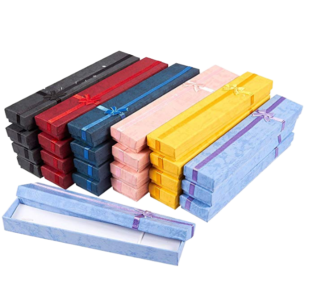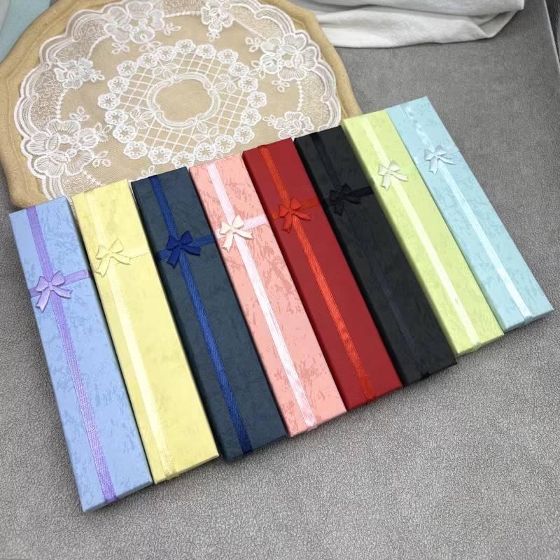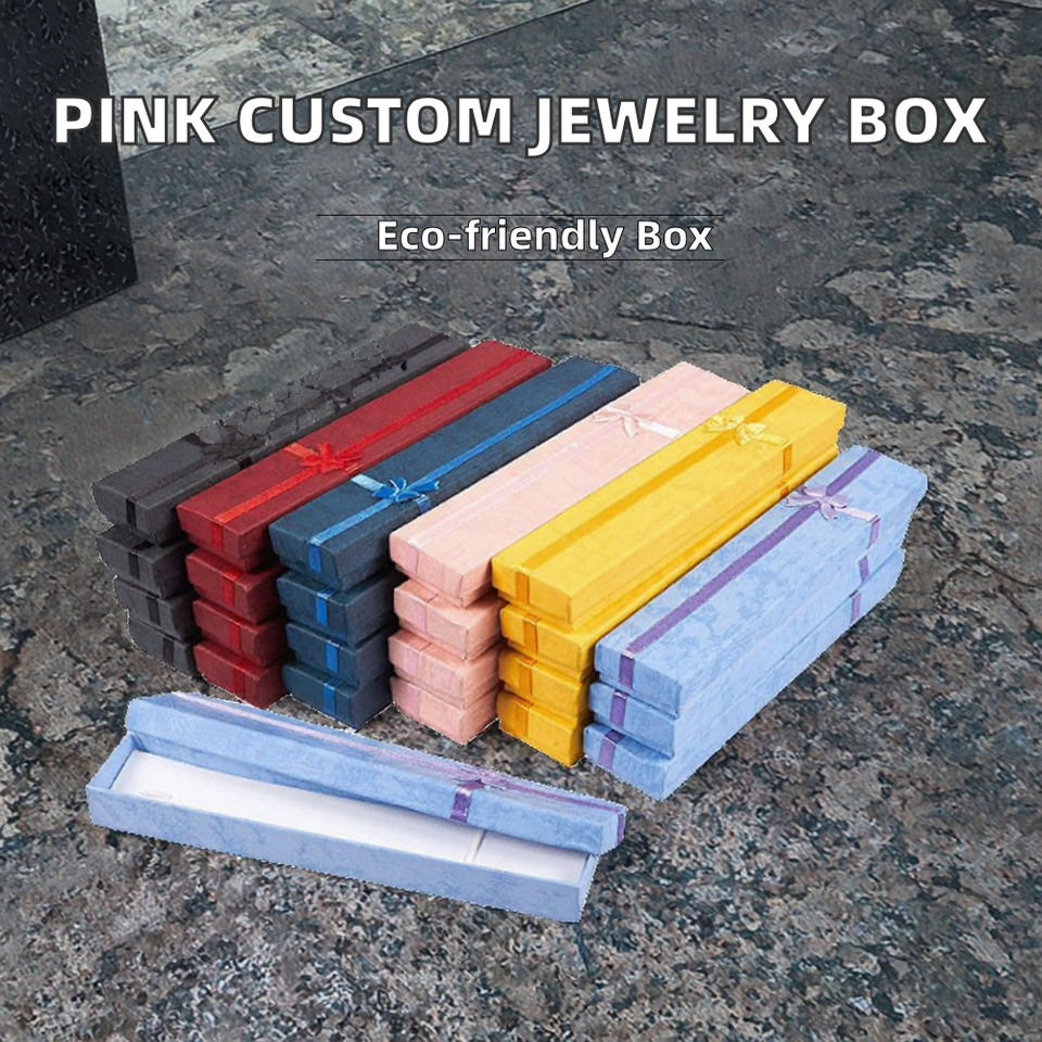Boîte d'emballage en papier pour bijoux personnalisée et bon marché, pendentif de collier rose pour filles, boîte à montre en carton avec vernis et ruban recyclable