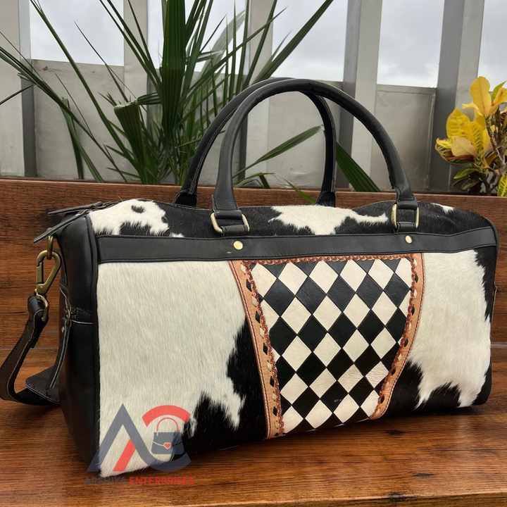 Sacs de voyage Weekender de nuit en cuir de vachette usinés à la main avec motif à carreaux personnalisés Sacs de sport pour hommes et femmes