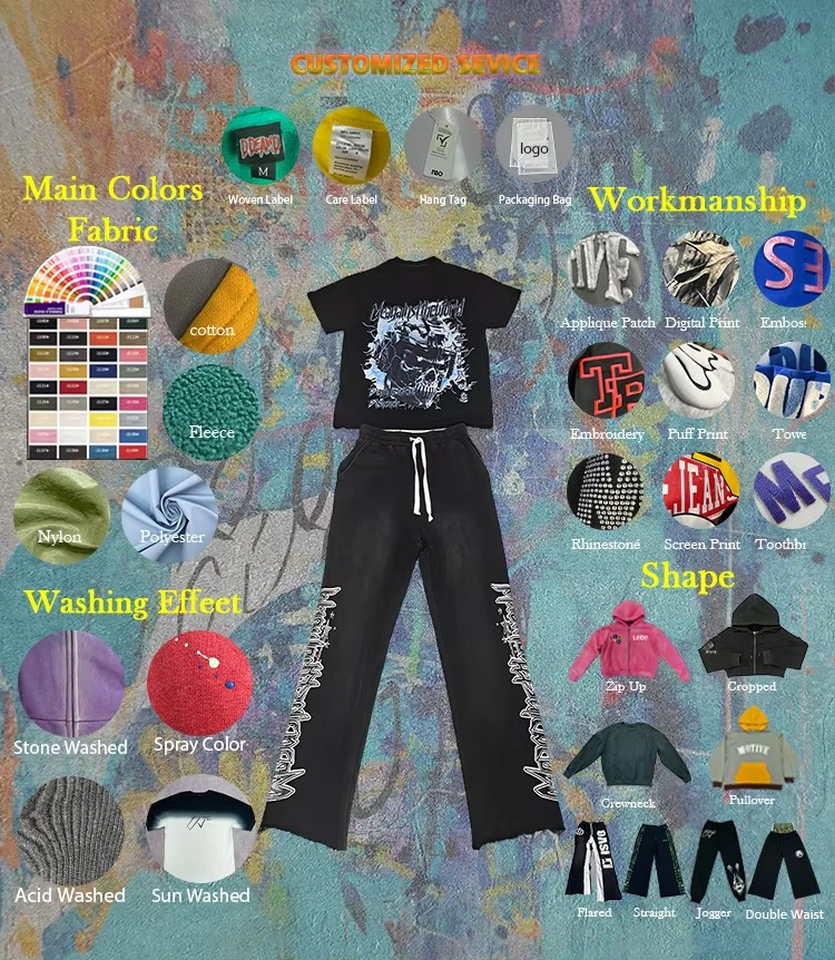 Ensemble de sweatshirt à capuche zippé personnalisé avec broderie en chenille et impression 3d du logo complet pour hommes survêtement unisexe en coton délavé au soleil survêtement