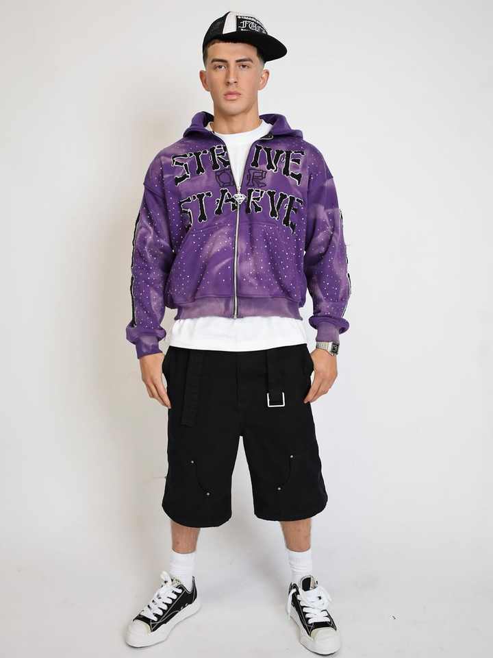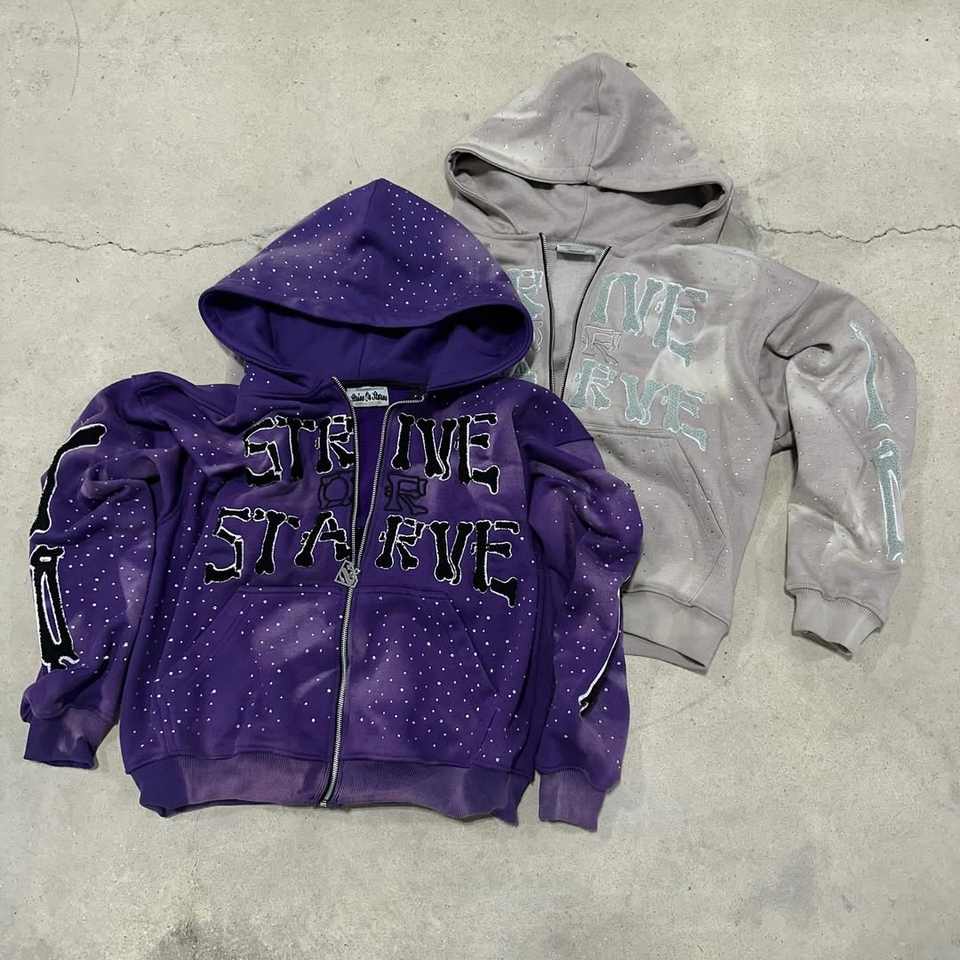 Sweats à capuche brodés en chenille personnalisés veste zippée en strass lavage à l'acide sweat à capuche vintage délavé en polaire pour hommes