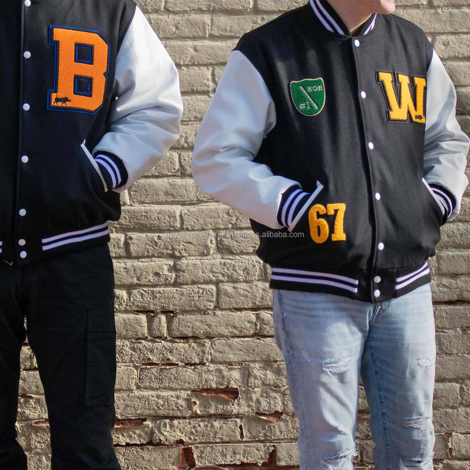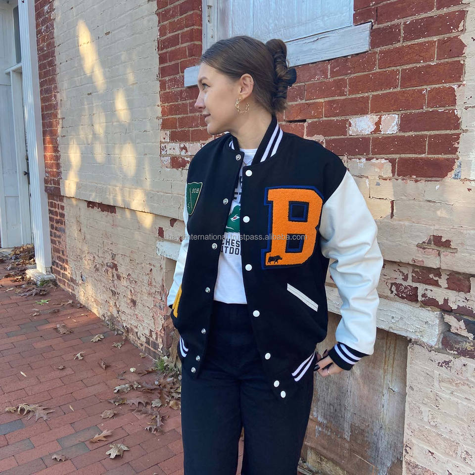 Patchs de broderie en chenille personnalisés 100% laine corps manches en cuir hommes femmes veste universitaire