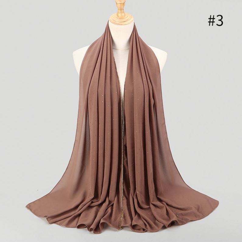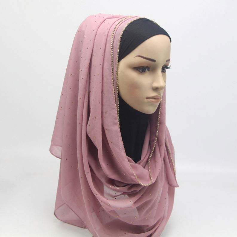Custom Chiffon Cotton Rhinestone Muslim Women Hijab Scarf-All Sizes Customizable Colors Four Seasons Reasonable Price