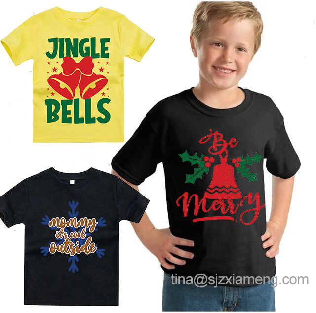 T-shirt personnalisé pour enfants 100% coton peigné garçon enfants bambins filles top t-shirts à manches courtes t-shirt de Noël