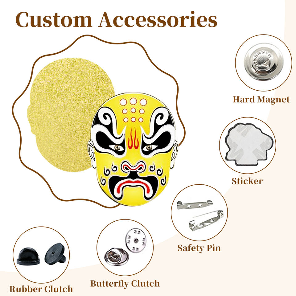 Insigne personnalisé de visage d'opéra chinois broche en métal émaillé broche d'art oriental Festival événement Souvenir pièces musicales Talk-Show cadeau Promos