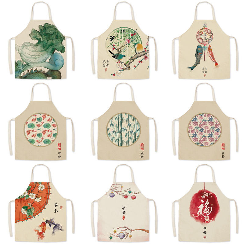 Tablier en coton de style chinois personnalisé avec impression de tirage Tablier de chef asiatique traditionnel Tablier de travail OEM