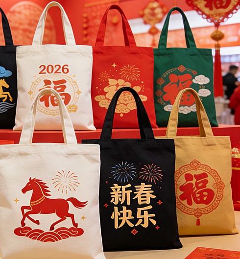 Sac fourre-tout en toile de coton pliable réutilisable de style chinois personnalisé avec une longue poignée pour les voyages en plein air, les courses et les cadeaux