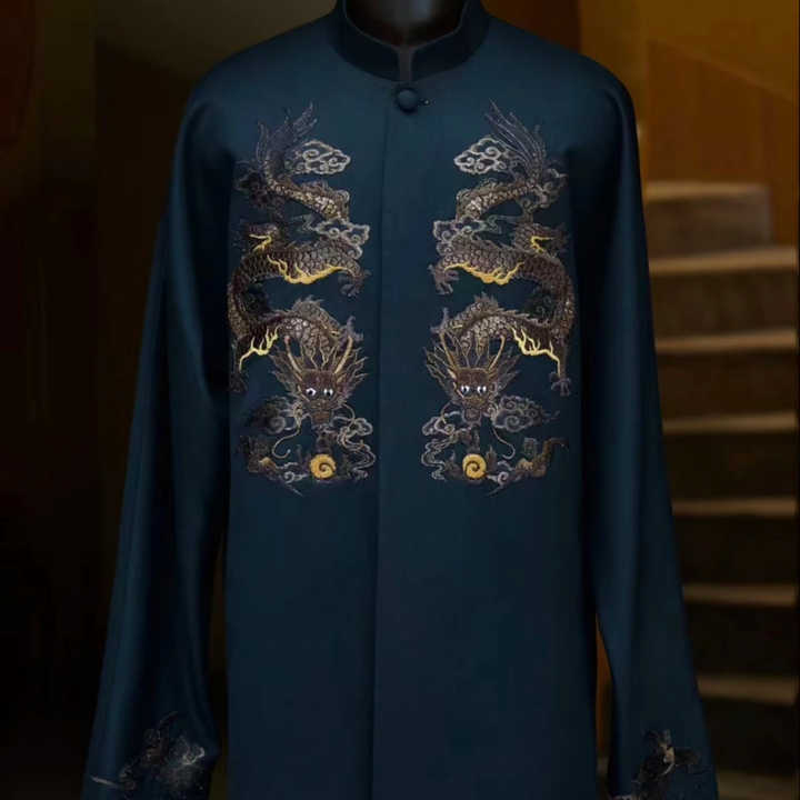 Col montant de style chinois personnalisé vêtements pour hommes d'âge moyen et Dlderly mince robe noire costume