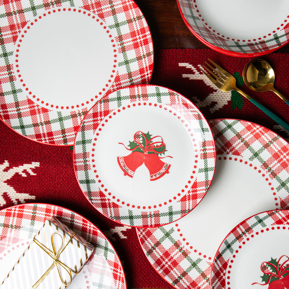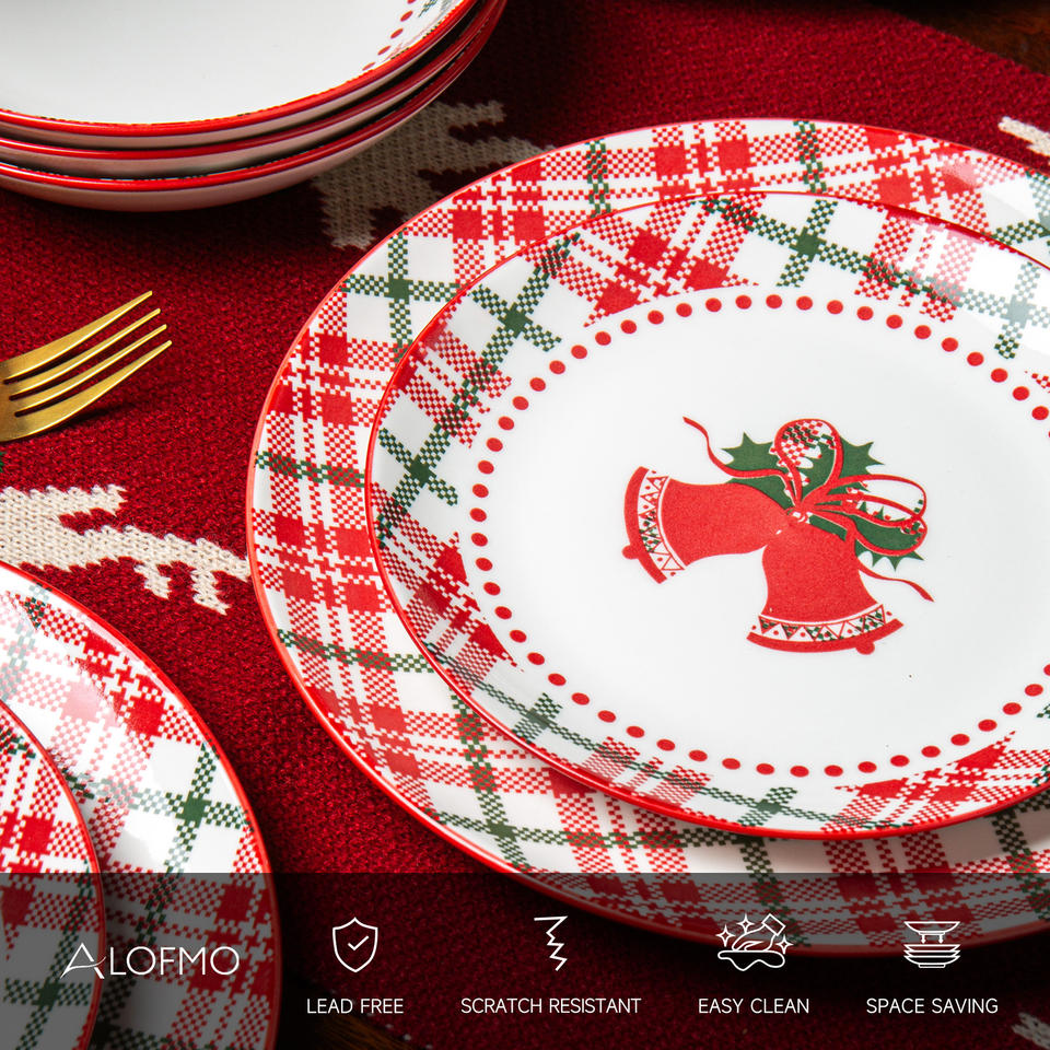 Service de table de Noël personnalisé, peint à la main, en céramique, grès, porcelaine ou porcelaine fine, 12 pièces