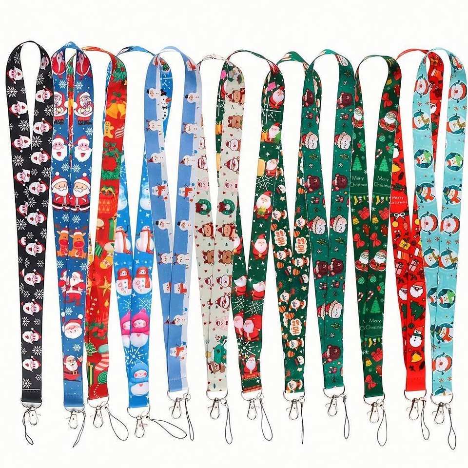 Ensemble de cordons de cou personnalisés pour Noël avec motifs Père Noël et flocons de neige, sangles détachables pour clés, cartes d'identité, cartes de crédit et breloques de téléphone