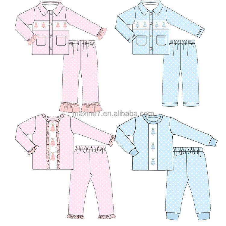 Ensemble pyjama de Noël personnalisé pour enfants Vêtements de nuit d'hiver smockés avec impression des fêtes Pyjamas de fête pour garçons