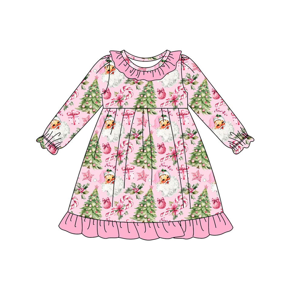 Custom Casual Print Christmas Trees Santa Girls Clothing Sets Kids Ruffles Dress Baby Bubble Rompers Sister Matches Boutique