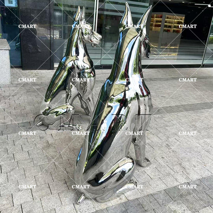 Sculpture de Doberman en fibre de verre 3D grandeur nature, chromée sur mesure, pour hall d'hôtel, grande sculpture extérieure, sculpture géante sur mesure