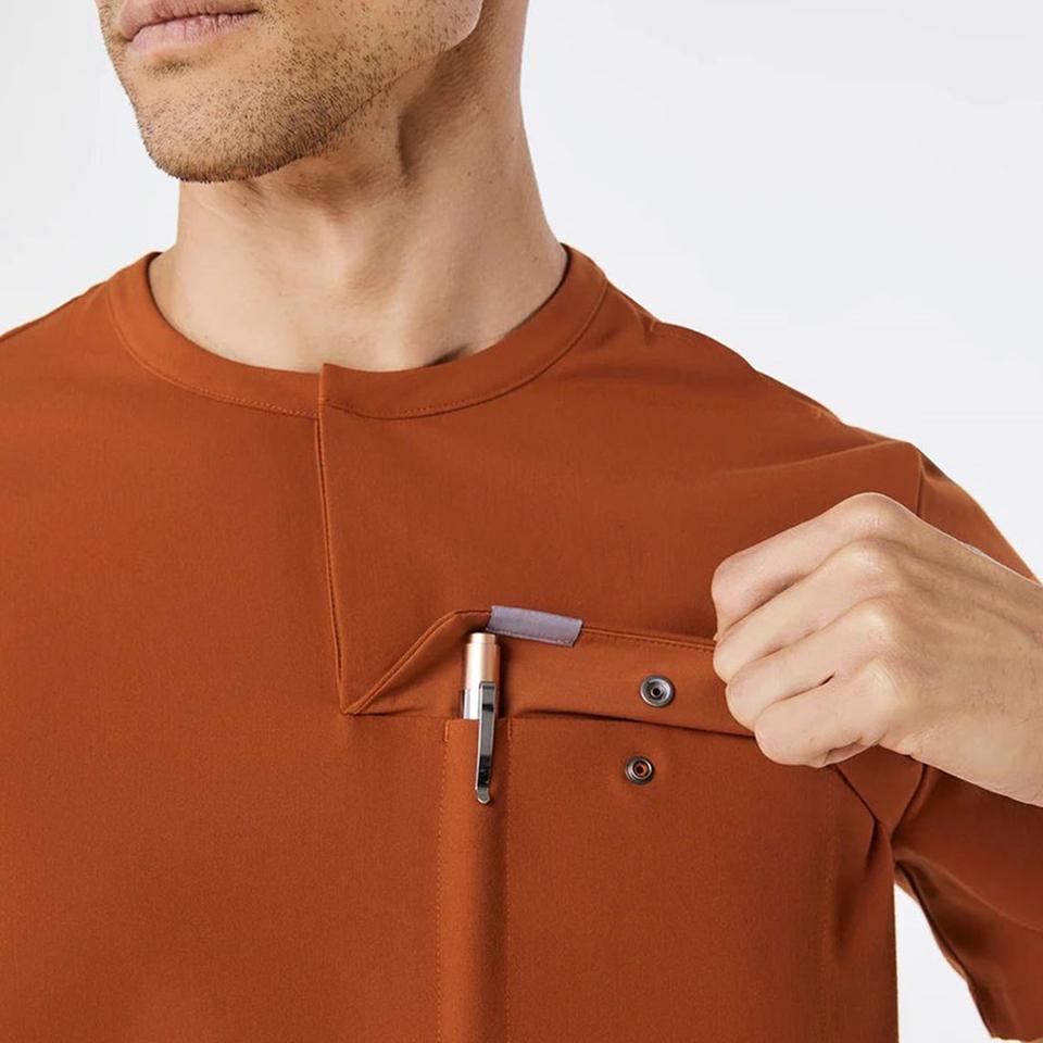 Ensembles d'uniformes d'infirmière/médecin pour hommes, coupe classique personnalisée, y compris un pantalon de survêtement médical à ouverture Henley caché, boîtier à pression