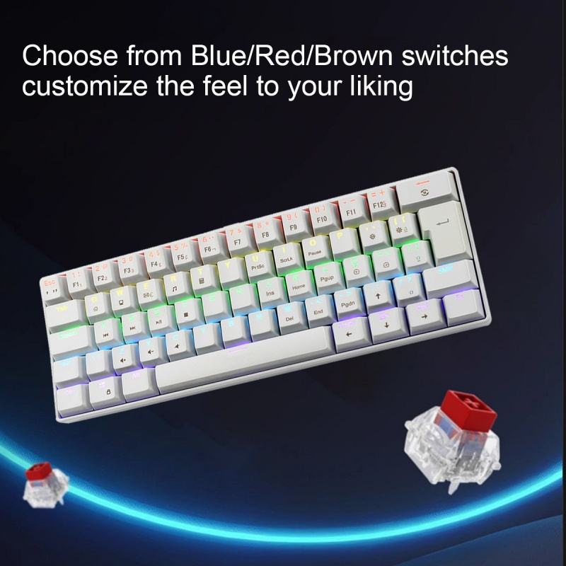 Clavier mécanique de jeu compact 60% avec disposition anglaise classique personnalisée, 61 touches, rétroéclairage LED multicolore pour PC Gamer