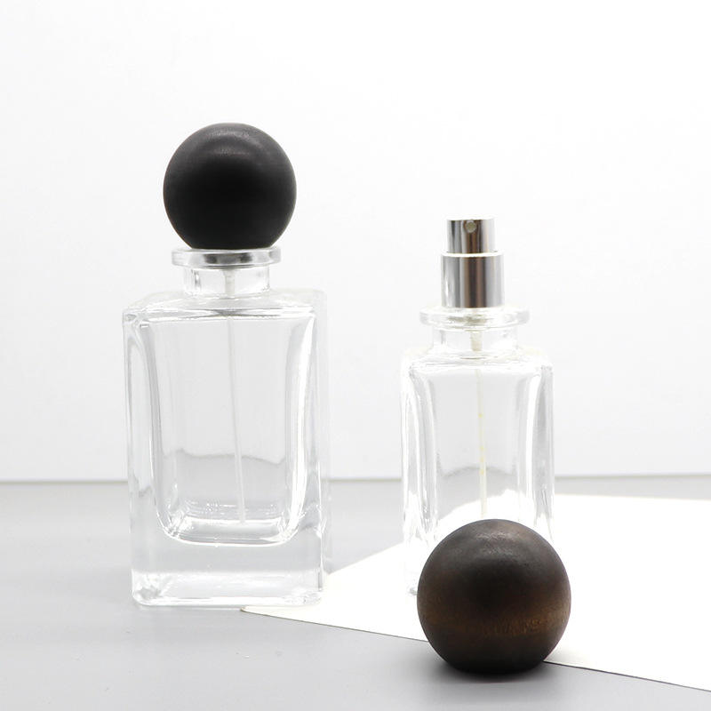 Bouteilles de rangement en verre transparent personnalisées, forme cube carré, 30ml, 50ml, 100ml, flacon de parfum vide avec bouchon à bille