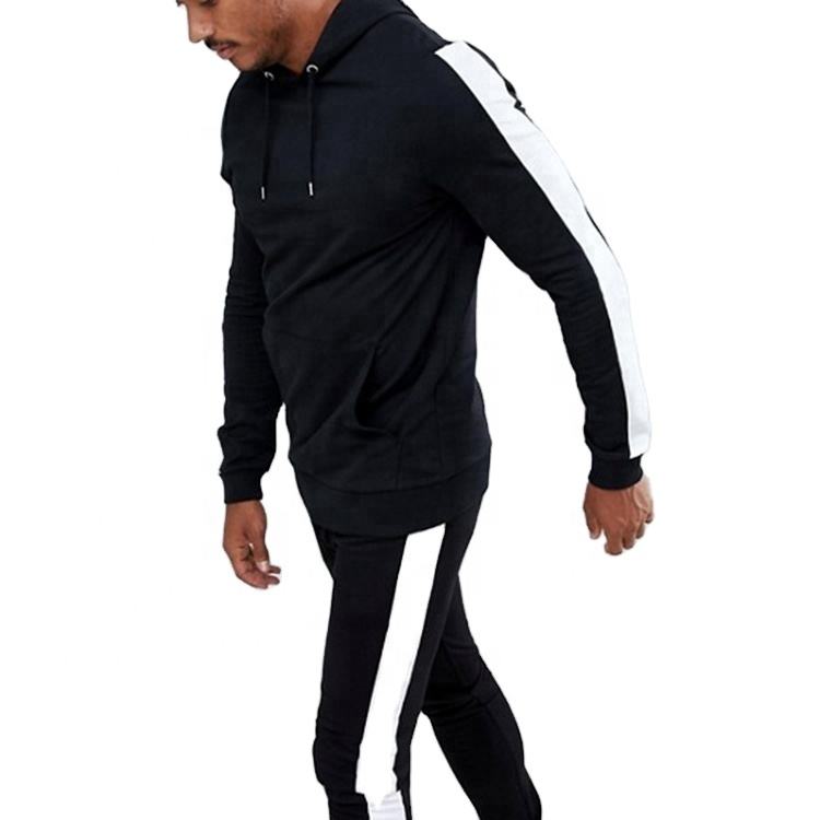 Ensemble de deux pièces, survêtement pour hommes, personnalisé, noir ajusté, à rayures blanches sur le côté,
