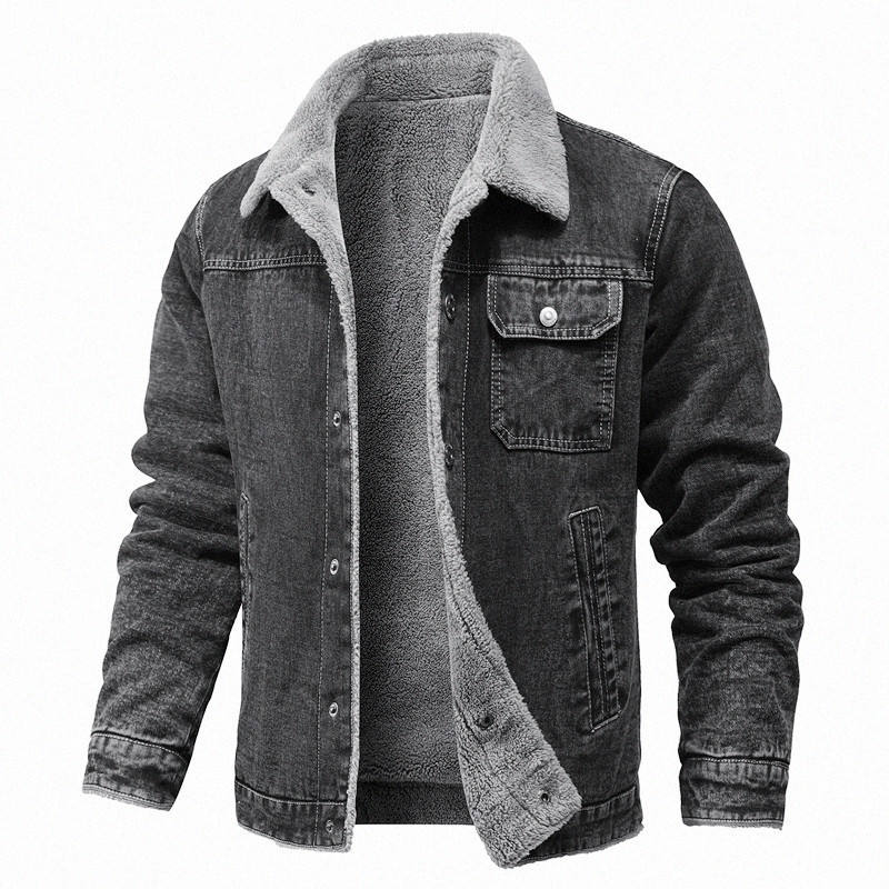 Veste en jean vintage à col montant en polaire avec poches sur le devant et logo personnalisé pour homme