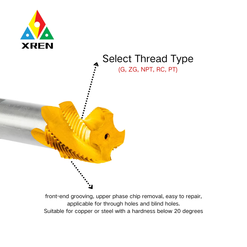 Flûte en spirale enduite d'étain de cobalt personnalisée 1/16 "1/2" G1 tarauds de filetage HSS outil de taraudage pour G/ZG/NPT/RC/PT