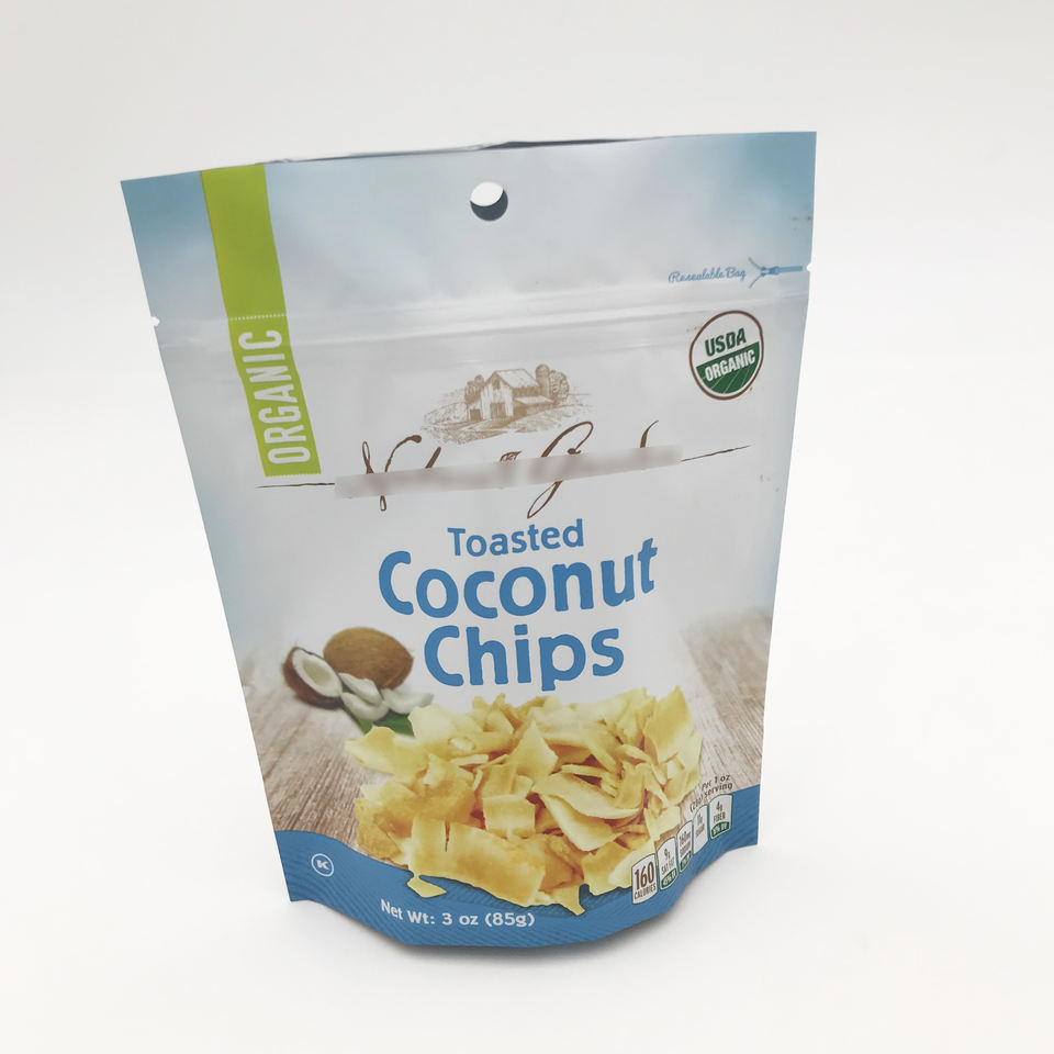 Sac d'emballage en plastique de noix de coco personnalisé pour les fruits secs, la mangue, les Chips, les bananes, les collations, sac en Mylar alimentaire argenté avec fermeture éclair