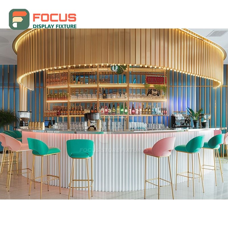 Comptoir de service café personnalisé avec caisse intégrée, étagère de boulangerie et présentoir en chêne pour café