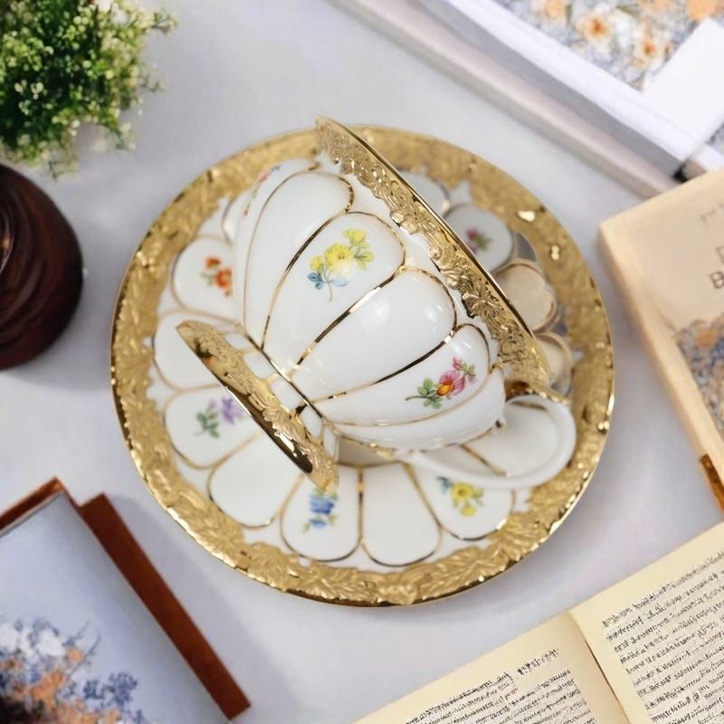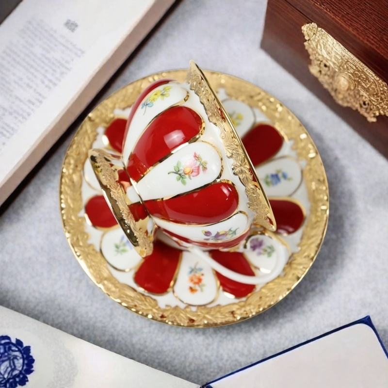 Custom Coffee Tea Cup High Quality Gilded Palace-Style Coffee Cup for Hotel Restaurant Coffee Shop Luxury Tea Cups and Saucers