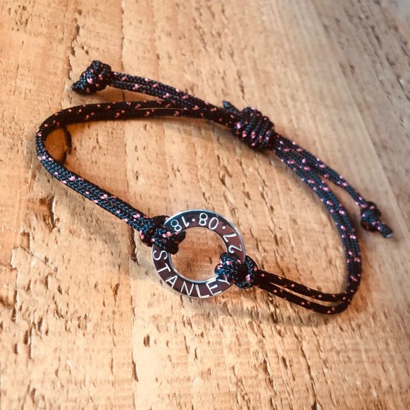Rondelle de pièces personnalisée gravée logo coordonné année de naissance réglable personnalisé bracelet en corde pour hommes